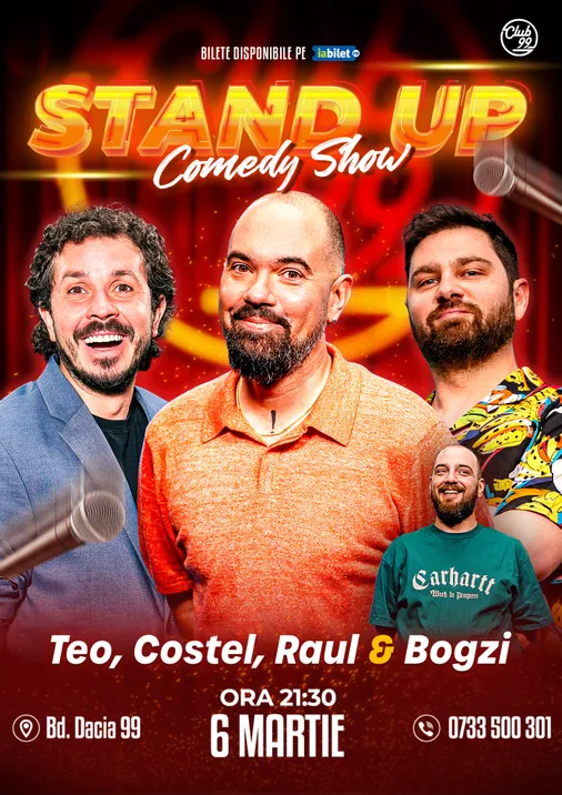 Vă așteptăm la o seară de stand-up comedy alături de Teo, Costel, Raul Gheba - Bogzi