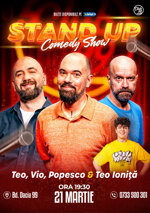 Vă așteptăm la o seară de stand-up comedy alături de Teo, Vio, Cristi Popesco - Teo Ioniță