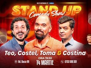 Vă așteptăm la o seară de stand-up comedy alături de Toma, Mălăele, Ioana Luiza & Mincu