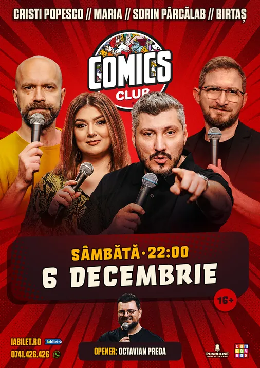 Stand-up cu Cristi Popesco, Maria Popovici, Sorin Pârcălab și Dan Birtaș la ComicsClub!