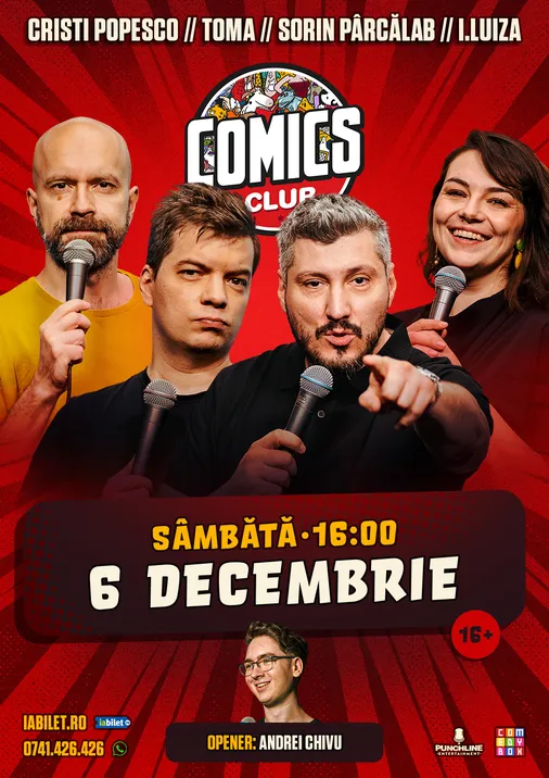 Stand-up cu Cristi Popesco, Toma, Sorin Pârcălab și Ioana Luiza la ComicsClub!