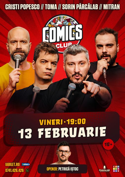 Stand-up cu Cristi Popesco, Toma, Sorin Pârcălab și Mitran la ComicsClub!