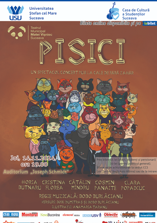 „PISICI” este o producție a Teatrului Municipal ”Matei Vișnic” Suceava, un spectacol concert conceput de Bobo Burlăcianu și Bobi Dumitraș.Un fel de alternativă parodică la Cats. O joacă muzicală în care câteva pisici își deapănă poveștile. La început a fost un 'miau', după care Pisica Dumnezeu a creat o lume dominată de pisici. În absența omului, pisicile îi iau locul, la pachet cu problemele aferente.