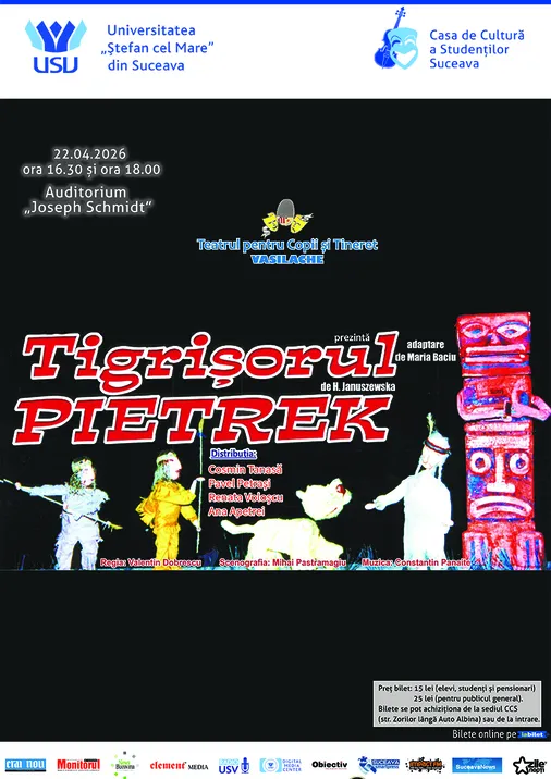 Vă invităm la teatru să vedeți cât de fricos este puiul de tigru, să urmăriţi călătoria Tigrişorului Pietrek, aventurile prin care trece şi lecţia de viaţă pe care o primeşte!