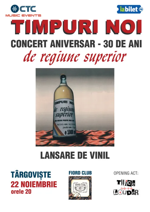 "De regiune superior" face 30 de ani... Și a devenit nobil precum vinul vechi. Pentru a sărbători acest lucru ne-am hotărât să îl edităm pe vinyl pentru prima dată și să-i facem un concert așa cum merită. Pe 22 noiembrie vă așteptăm în Targoviste, la Fiord Club , în număr cât mai mare, pentru acest concert eveniment! Va fi și "Copilul" prezent, editat pentru prima dată pe C.D. Încălzirea o fac colegii de la Twice Louder din Targoviste!