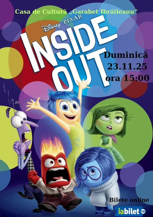 Inside Out" (Întors pe dos) este un film de animație despre emoțiile unei fete pe nume Riley, care sunt personificate ca personaje ce locuiesc în mintea ei.