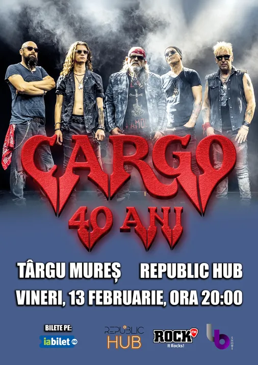 Vineri, 13 februarie, la Republic Hub – Sântana de Mureș, sărbătorim 40 de ani de rock cu legendarii Cargo! Vă așteptăm la un eveniment unic, o seară magică alături de CARGO, care vor fi "Aproape de voi", într-o atmosferă electrizantă și plină de emoție. Pregătiți-vă pentru o „ploaie” inevitabilă de aplauze și momente de neuitat.
