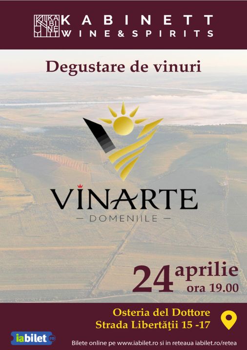 Veniți alături de Kabinett Wine pentru o noua experiență! Vom avea ocazia de a degusta o selecție de vinuri de la DOMENIILE VINARTE.