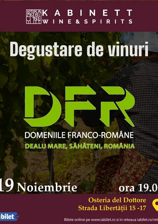 Pe 19 noiembrie, te invit la o degustare specială semnată Domeniile Franco Române – o cramă cu ADN francez și suflet românesc, unde soiurile locale și internaționale se întâlnesc într-o interpretare elegantă și surprinzătoare.