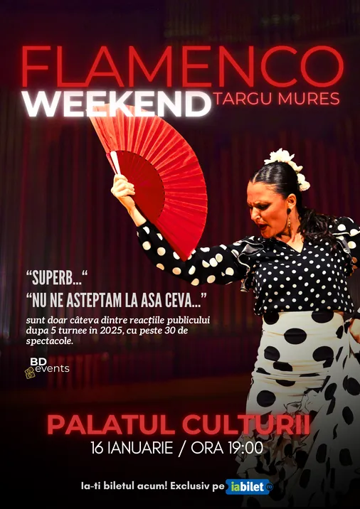 Târgu Mureș, pregătește-te! În data de 16 Ianuarie 2026, scena Palatului Culturii va fi animată de revenirea uneia dintre cele mai carismatice artiste de flamenco: Maria Rubi și trupa sa! Mai multe detalii