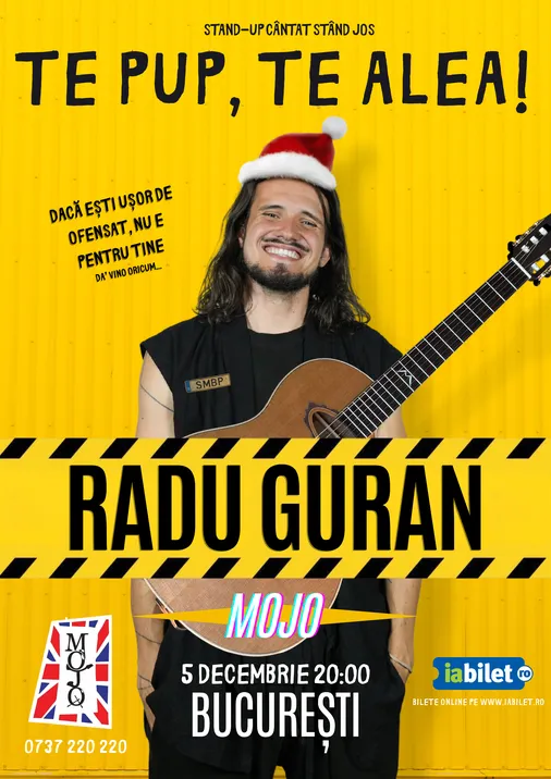 Pe Radu Guran nu l-a nascut ma-sa, a venit singur pe lume de nebun, iar cu ocazia asta vine si in fata dumneavoastra in aceasta seara pentru a va prezenta un show muzical de comedie, in cuvintele lui ‘Mai radem si noi, mai alea’! Nu este recomandat tinerilor sub 16 ani intrucat limbajul are multe culori, de asemenea nu este recomandat persoanelor usor de ofensat, dar sunt si ele bine venite.