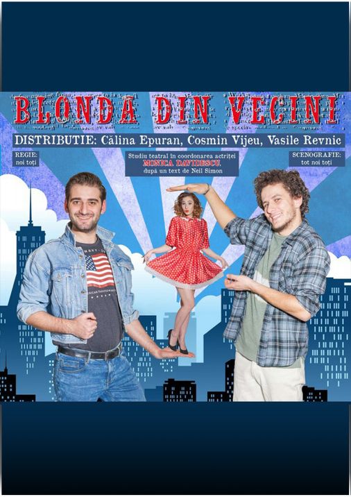 Echilibrul prieteniei lor este insa perturbat de aparitia „blondei din vecini”, Sophie Rauschmeyer (Calina Epuran), americanca desavarsita, fosta „aproape campioana” a jocurilor olimpice la inot, care se muta in apartamentul gol din vecini si de care Norman se indragosteste nebuneste.