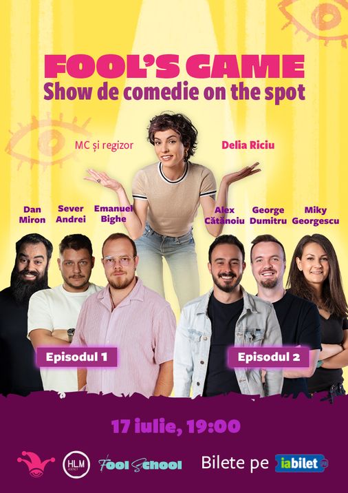 Fool’s Game ” e un show de comedie creată on the spot. Cu 3 participanți. Cu premise pe care le află pe loc. Cu puncte tâmpite și premii pe măsură. Iar joi vrem să tragem 2 episoade cu tine in public. Dacă vrei și tu, hai joi de la 19:00 la The Fool.
