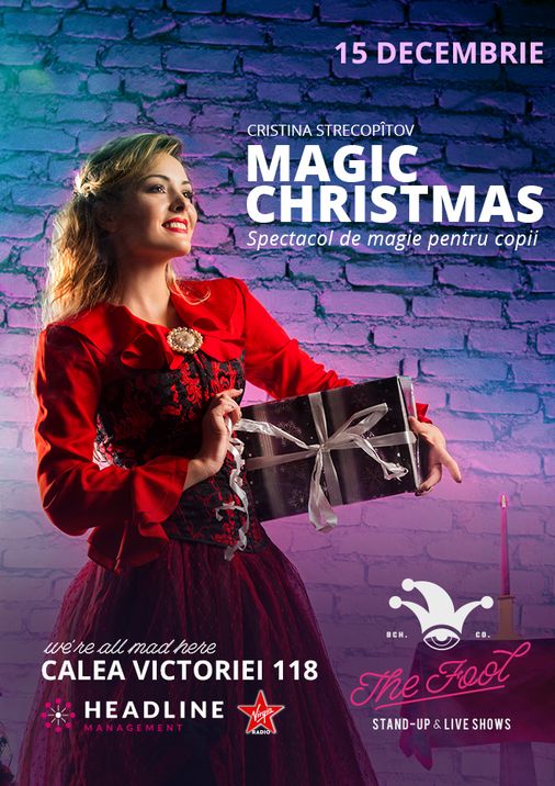 Cristina Strecopitov și de toți copiii care vor învăța vrăji noi. Pentru că nicicând magia Crăciunului nu e mai puternică decât atunci când iese din bagheta magicianului. Sub ninsoarea de confetti, copilașii vor deveni ajutoarele Moșului și ale lui Rudolf. Renii, bradul, cadourile și multe alte surprize va asteapta într-un spectacol încărcat cu bucurie, ninsoare și multe zâmbete.