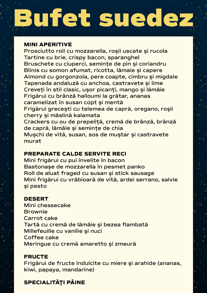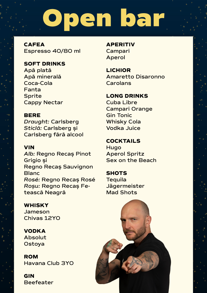 - Open bar, că oameni suntem (vezi meniul complet în foto)
