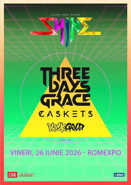 Three Days Grace, Caskets (UK) si Black Gold (UK) vor canta la Romexpo pe 26 iunie in cadrul Shine Festival. Primele 500 de bilete din fiecare categorie au pret earlybird si se pun in vanzare vineri pe 19 decembrie la ora 10:00.