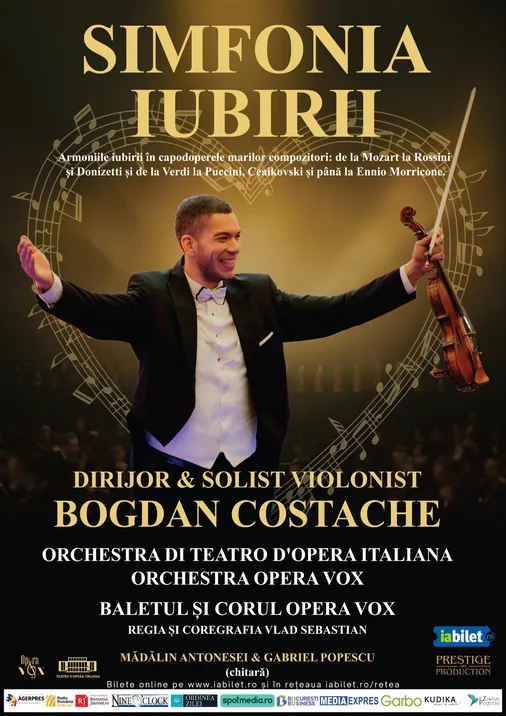 Conducerea muzicală a spectacolului va fi asigurată de tânărul dirijor și solist violonist Bogdan Costache, unul dintre cei mai talentați conducători de orchestră ai tinerei generații, născut în România.