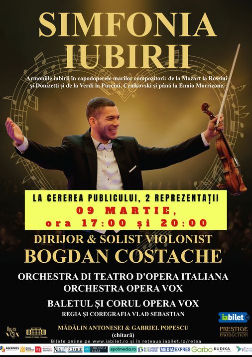 Conducerea muzicală a spectacolului va fi asigurată de tânărul dirijor și solist violonist Bogdan Costache, unul dintre cei mai talentați conducători de orchestră ai tinerei generații, născut în România.