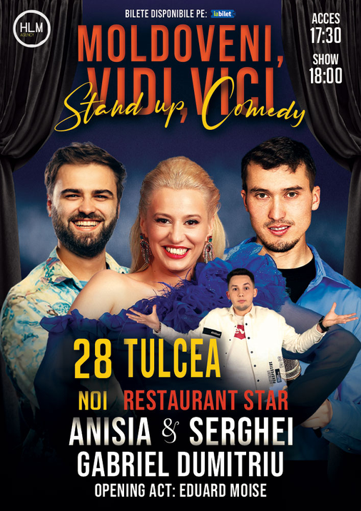 Gabriel Dumitriu, iar cei trei pornesc într-un turneu național pentru a aduce umorul moldovenesc la voi în oraș. Și ca seara de comedie să fie completă, Eduard Moise va fi prezent în deschiderea lor. I-ai văzut la iUmor, acum ai ocazia să îi vezi live și să îi cunoști. Noi venim cu distracție garantată, tu cumpără biletele și vino cu prietenii la spectacolul de stand-up comedy!
