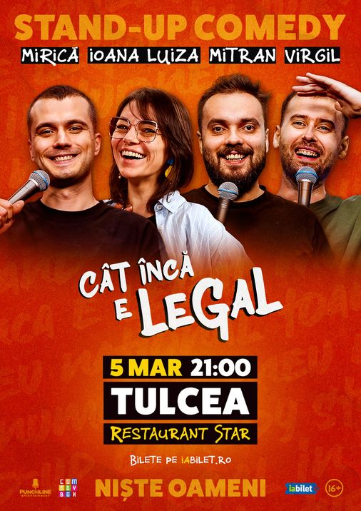 Tulcea: Stand-up Comedy cu Sergiu Mirică, Virgil Ciulin, Ioana Luiza și Dragoș Mitran | Niște Oameni | Cât încă e legal