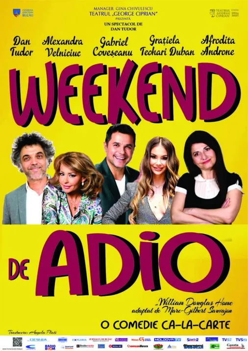 Revenirea lui Dan Tudor ca regizor și actor al noii premiere WEEKEND DE ADIO, reprezintă o garanție a succesului de public. Acompaniat de o echipă de actori de calibru: Alexandra Velniciuc, Gabriel Coveșeanu, Afrodita Androne și Grațiela Teohari-Duban, efervescentul regizor ne promite O COMEDIE CA-LA-CARTE, in care aventurile amoroase, răsturnările de situație și autenticul interpretărilor vor reprezenta deliciul spectatorilor. Mai multe detalii