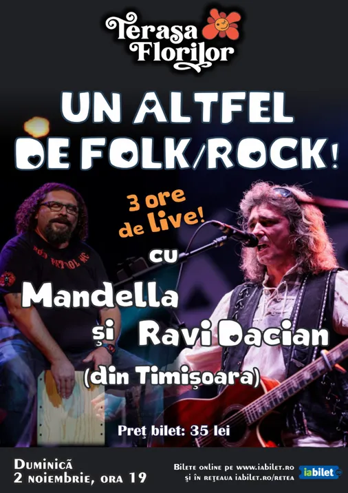 Vă invităm la Terasa Florilor, la o duminică seară de FOLK & ROCK ALTFEL – 3 (trei) ore de muzică vie, autentică și plină de emoție!