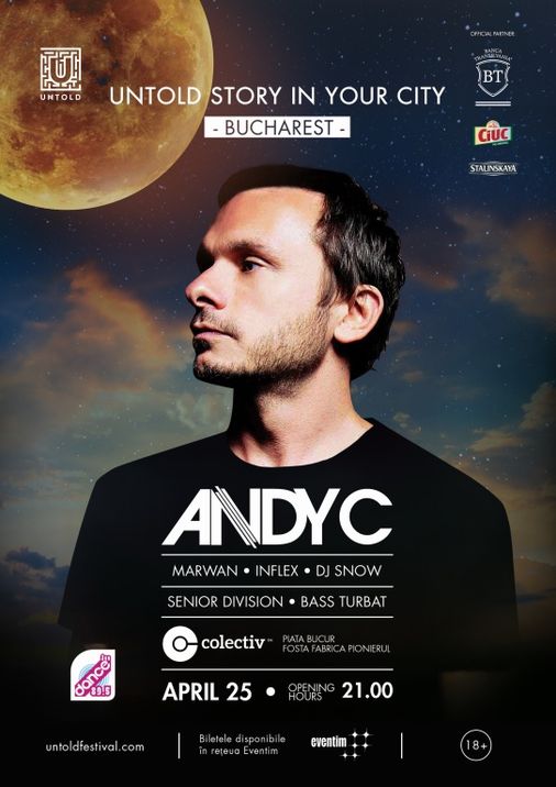 Experiența Untold în București! Pregătiți-vă să gustați în avans experiența Untold Festival! În 25 aprilie basmele românești vor cuceri clubul Colectiv din București pentru primul promo party marca Untold Festival. Vă pregătim o experiență Untold alături de ANDY C, DJ Snow, Bass Turbat, Marwan Dua, Senior Division și Inflex. Mai multe detalii