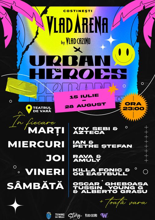 Programul show-urilor poate suferi modificări. Pentru programul final va rugăm sa consultați pagina de Instagram Vlad Arena Costinești.