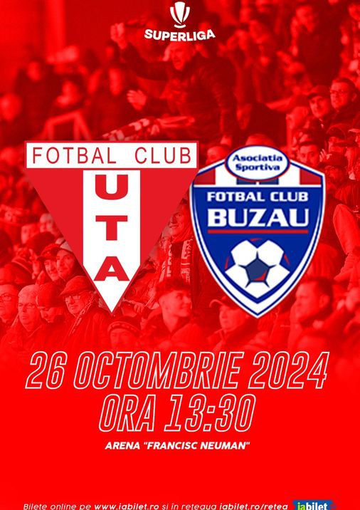 Clubul UTA anunță că s-au pus în vânzare bilete pentru meciul din etapa a 14-a a Supeligii, cu Gloria Buzau, programat sâmbătă, 26 octombrie, ora 13:30, pe Arena Francisc Neuman.