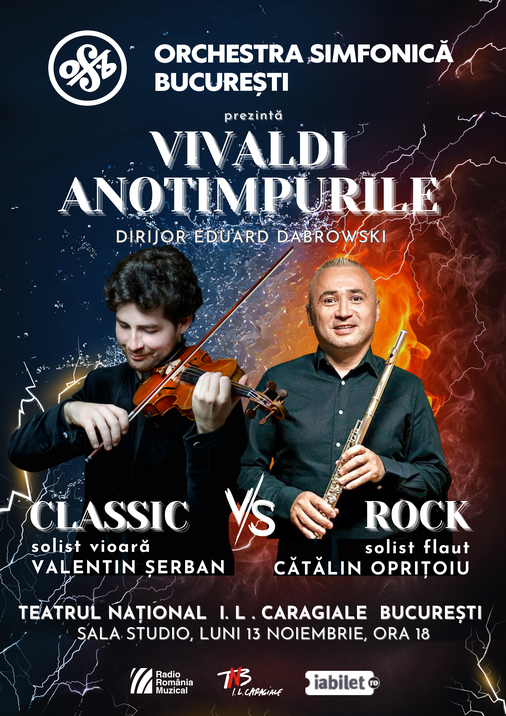 Orchestra Simfonică București vă așteaptă cu entuziasm la un eveniment muzical de excepție, cu un program dedicat marelui compozitor Antonio Vivaldi și celebrei sale creații, "Anotimpurile". Această compoziție a fost o sursă de inspirație pentru numeroși muzicieni, și de-a lungul timpului, au generat compoziții și versiuni care au captivat publicul prin originalitatea lor, fie prin reinterpretarea lor în diverse formule instrumentale, fie prin abordări stilistice diverse.