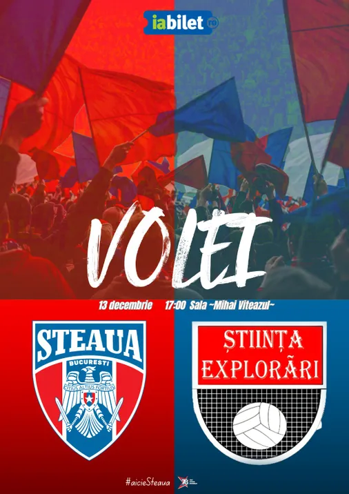 Pe 13 decembrie, la Sala Mihai Viteazul din București, C.S.A.Steaua Bucureşti – CS Știința Baia Mare se întâlnesc într-un meci spectaculos de volei. Vino să susții echipa ta favorită într-o atmosferă plină de energie in Campionat Național – etapa a 7-a! Mai multe detalii