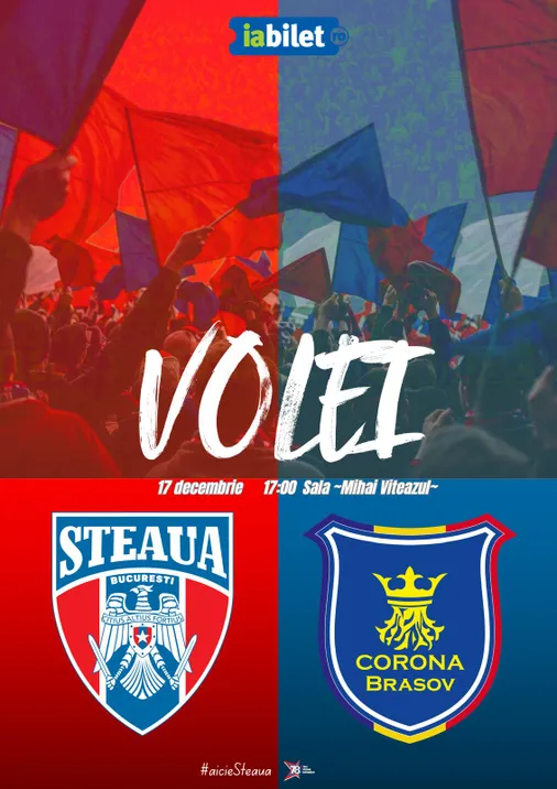 Pe 17 decembrie, la Sala Mihai Viteazul din București, C.S.A.Steaua Bucureşti – CSM Corona Brașov se întâlnesc într-un meci spectaculos de volei. Vino să susții echipa ta favorită într-o atmosferă plină de energie in Campionat Național – etapa a 7-a!
