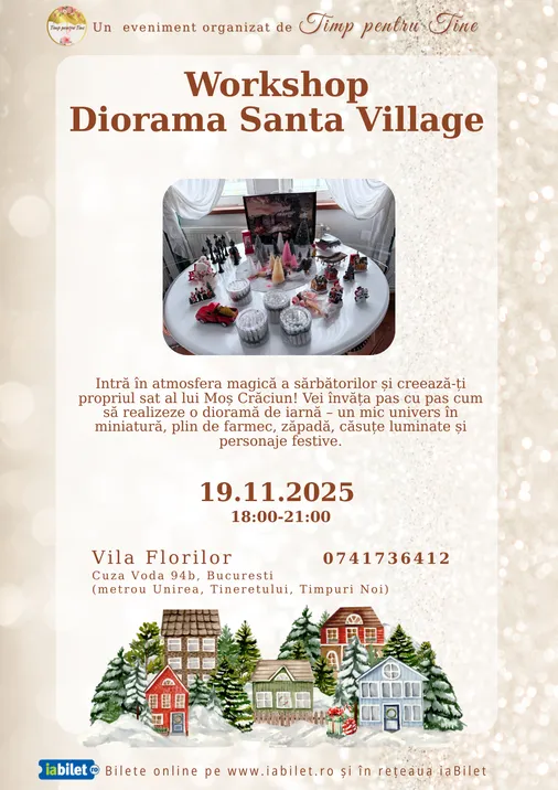 Participanții vor învăța pas cu pas cum să realizeze o dioramă de iarnă – un mic univers în miniatură, cu zăpadă, căsuțe luminate, brazi împodobiți și personaje vesele. Fiecare detaliu se va construi manual, din materiale sigure și ușor de folosit, dezvoltând creativitatea, îndemânarea și imaginația.