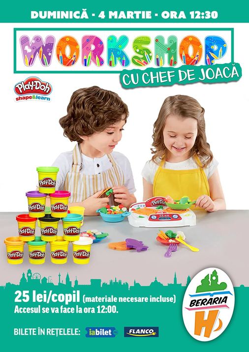 Duminică, 4 Martie, cei mici sunt așteptați la Berăria H să ia parte la un workshop Play-Doh unde vor învăța să modeleze diverse figurine folosindu-și creativitatea. Numărul de locuri este limitat, iar rezervarea locurilor este recomandată!