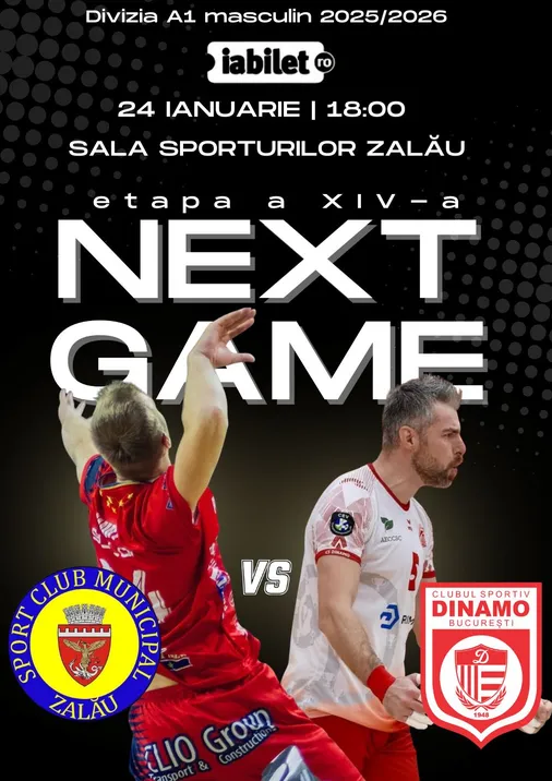 Va asteptam la primul meci pe teren propriu din acest retur de campionat, o confruntrare de foc in cadrul Etapei a XIV-a a Campionatului National de Volei, Divizia A1 masculin, impotriva campioanei en-titre, CS Dinamo Bucuresti ce va avea loc sambata, 24.01.2026, orele 18:00, in Sala Sporturilor din Zalau.