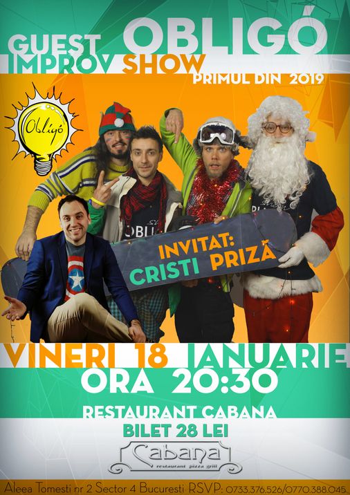 Vineri 18 ianuarie 2019, de la ora 20:30, va invitam la un super show de Improvizatie cu Trupa Obligo numai la Restaurantul Cabana. Invitat special Cristi Priza. Mai multe detalii