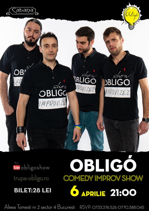 Noi te facem sa razi! Direct de pe scenele ''iUmor'' si "Romanii au talent" , iObligo la tine in cartier cu un super show de improvizatie live, ce va fi creat in fata ochilor tai ! Esti stresat/a? Posomorat/a? Te asteapta o gramada de treaba in saptamana ce urmeaza? Sau esti pur si simplu plictisit/a? Orice inseamna cotidian dispare cat ai zice „Obligo”. Mai multe detalii