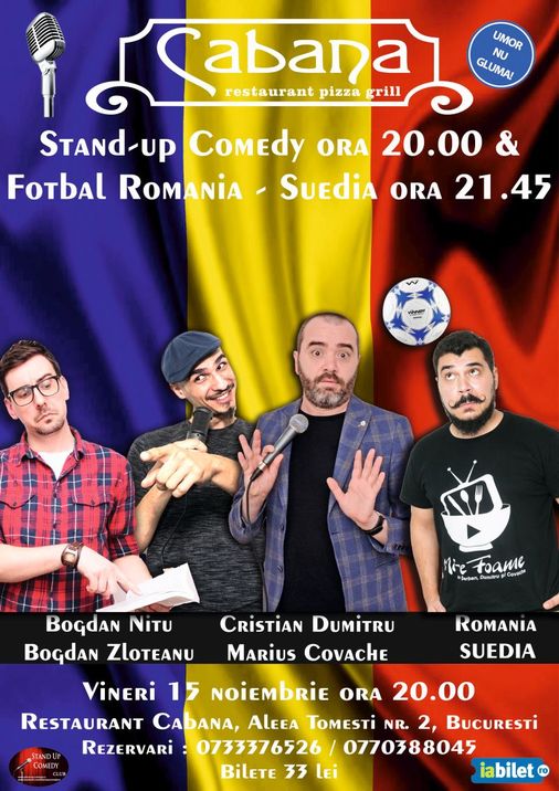 Vineri, 15 noiembrie 2019, de la ora 20:00, va invitam la un super show de Stand Up Comedy cu Cristian Dumitru & Friends dupa care la ora 21.45 puteti urmari Romania - Suedia, meci decisiv pentru calificarea la EURO 2020. Mai multe detalii